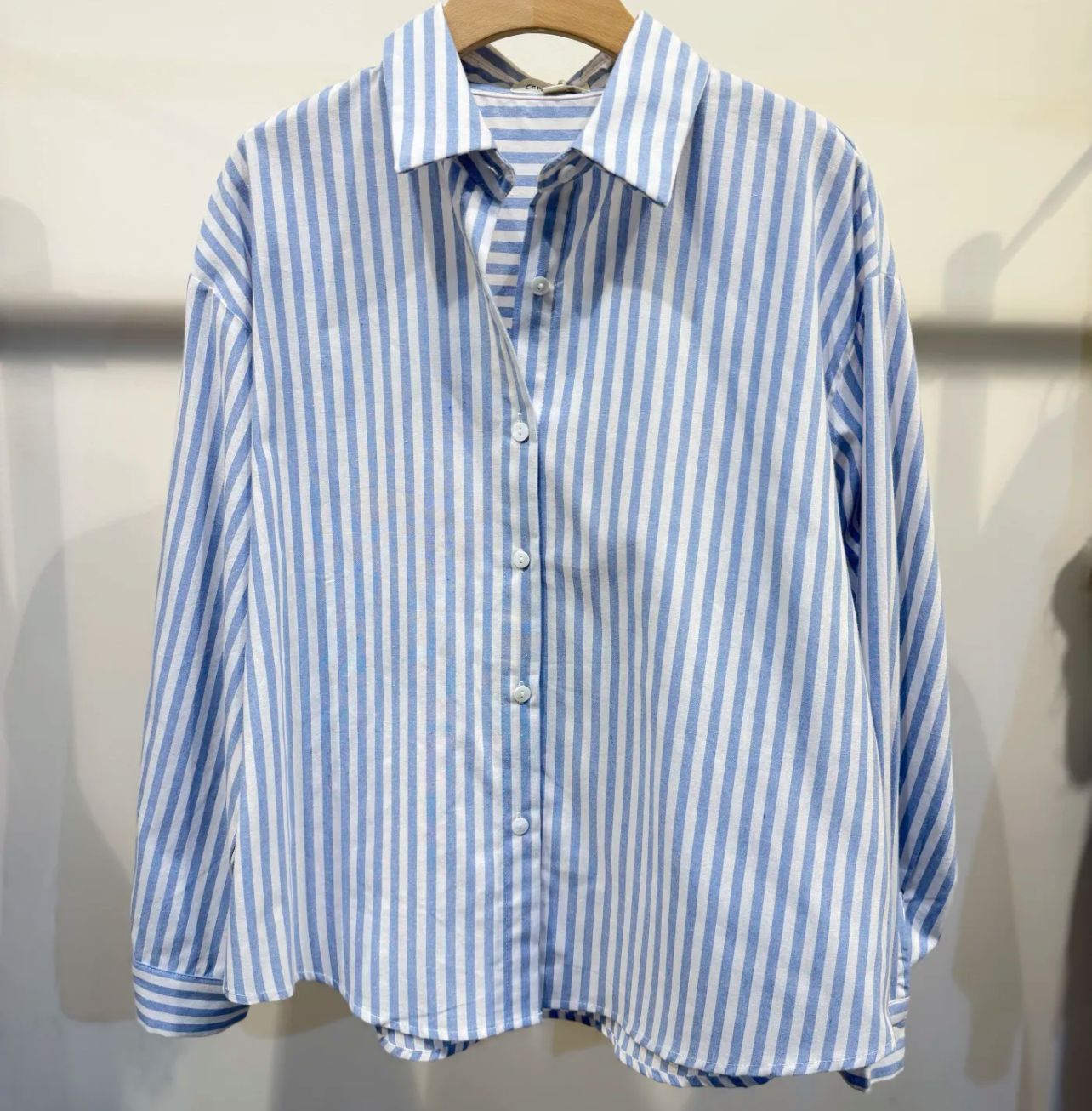 Dale un toque de sofisticación francesa a tu fondo de armario. Nuestra camisa de corte relajado combina la frescura del azul pastel con un delicado bordado en rojo que celebra el detalle.
