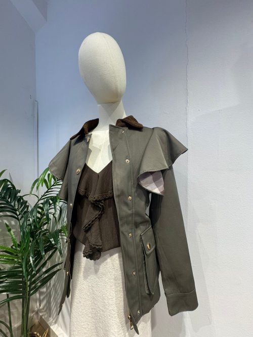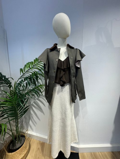 TallaML Chaleco Alisio Botanico44,95€Chaleco cruzado con lazada en algodón y lino con estampado en tonos añil Sunset Moon. Calidad: 85% Algodón 15% lino - Forro: 100% Algodón
