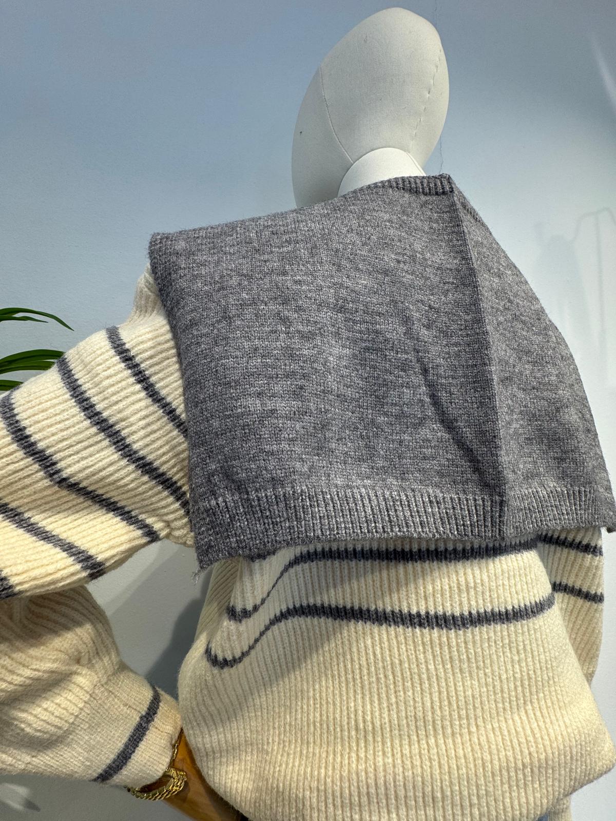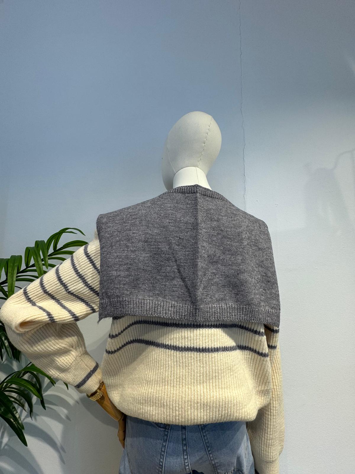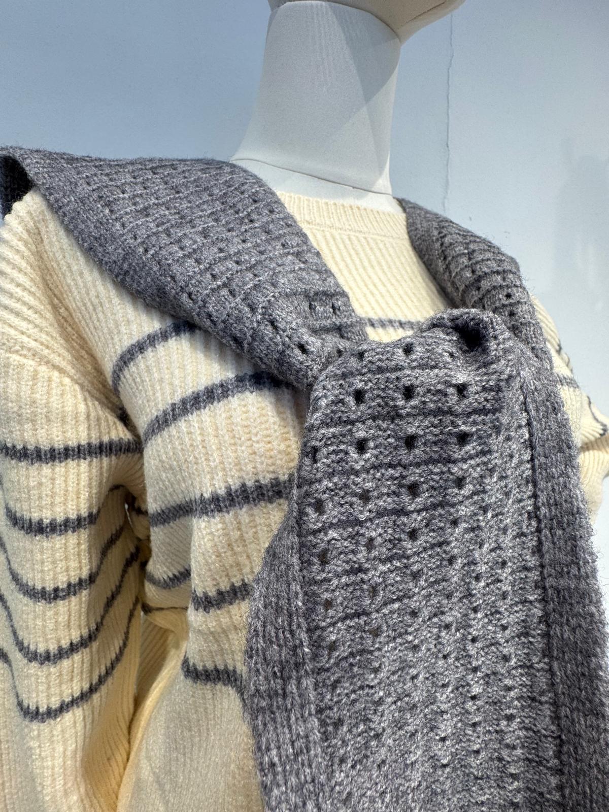 Este jersey de punto combina comodidad y versatilidad con un estilo moderno y actual. Es la prenda perfecta para la transición de temporadas, ofreciendo dos looks distintos gracias a su accesorio desmontable multifuncional.